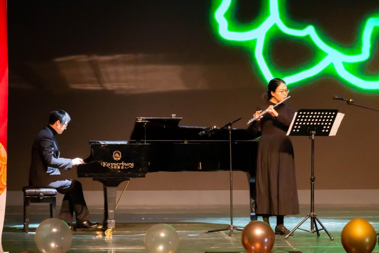 此外,晚会的特邀演出嘉宾重庆电视台时尚频道主持人周二毛、著名麻辣明星白老实为大家带来了极具巴渝特色的《戏说山城》;师生共创的琴笛合奏节目《茉莉花》以及快板《说重大》让大家感受到了yl6809永利官网浓浓的师生情;艺术学院舞蹈专业同学的民族舞串烧好评如潮;歌乐相声社、说唱社的精彩节目也获得了观众们的掌声和欢呼。